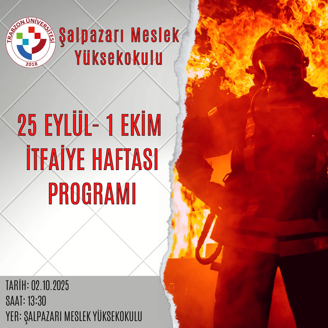 Şalpazarı Meslek Yüksekokulu olarak, her yıl 25 Eylül – 1 Ekim tarihleri arasında kutlanan İtfaiye Haftası kapsamında bir program düzenlenecektir.