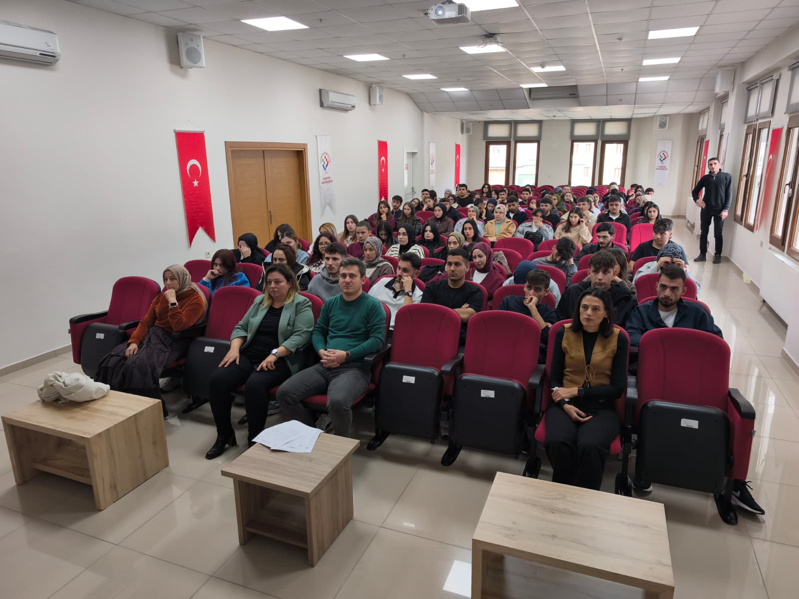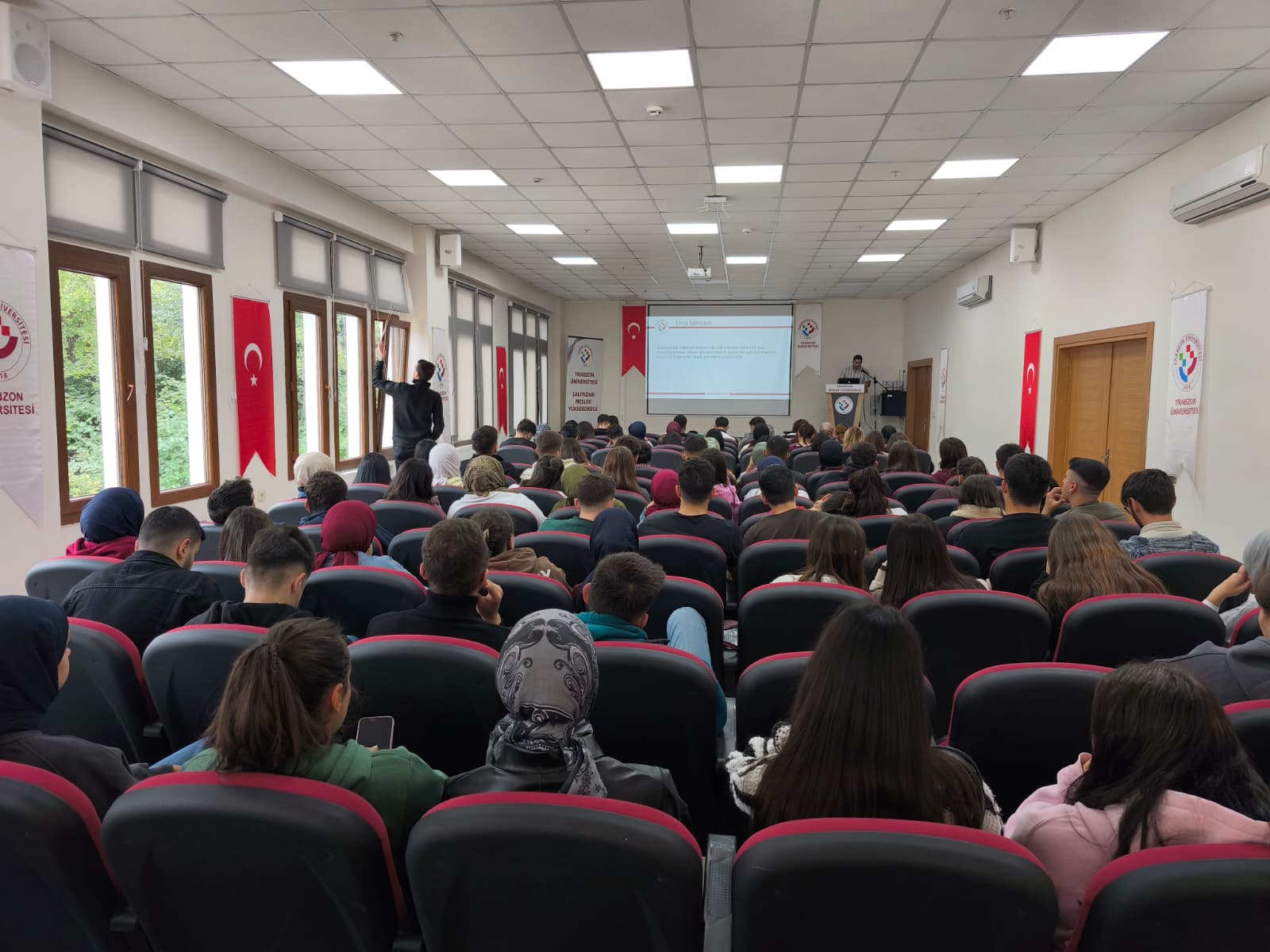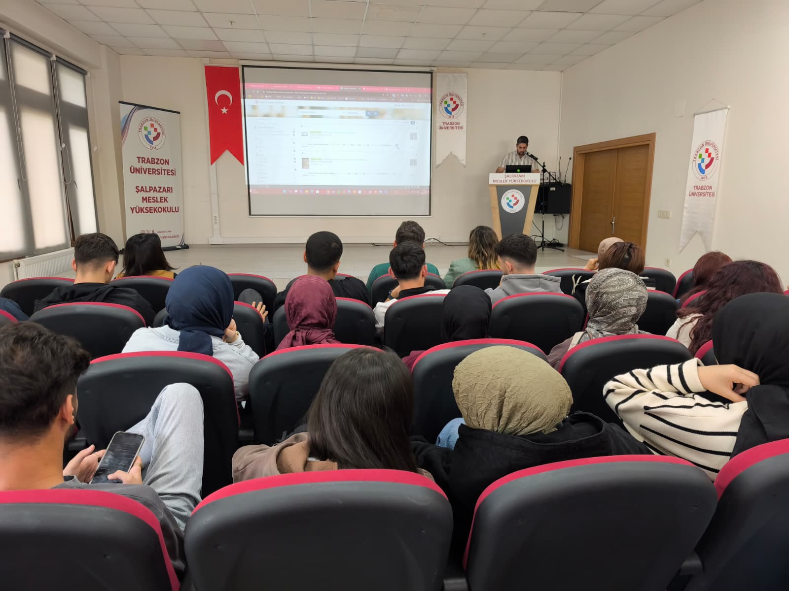 Trabzon Üniversitesi Kütüphane ve Dökümantasyon Daire Başkanlığı tarafından birimlerde yerinde eğitim amacıyla, tüm öğrencilerimizin katılımıyla Kütüphanede kitap alımı, kullanımı ve iade işlemleri ile ilgili, Kütüphaneci Umut Ali TOSUN tarafından Meslek Yüksekokulumuz Konferans Salonunda bilgilendirme yapıldı.