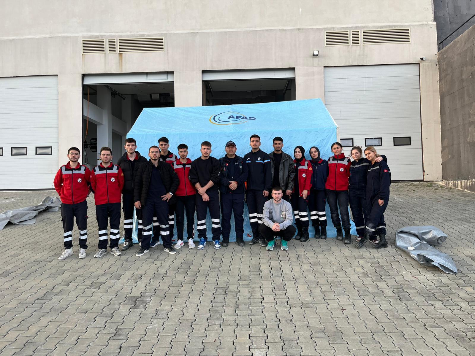 Meslek Yüksekokulumuz Mülkiyet Koruma ve Güvenlik Bölümü Sivil Savunma ve İtfaiyecilik Programı 2. sınıf öğrencileri, “İtfaiyecilik Alan Uygulamaları” dersi kapsamında Öğr. Gör. Aynur KAYA’nın koordinatörlüğünde Trabzon Valiliği İl Afet ve Acil Durum Müdürlüğü’nde saha çalışmaları gerçekleştirmiştir. Bu kapsamda öğrencilerimize; AFAD’ın teşkilat yapısı, görev ve sorumlulukları, afet bilinci, masa başı tatbikatları, araç ve malzeme tanıtımı ile kullanımı, telsiz ve çadır kurulumu, kentsel arama-kurtarma uygulamaları, arama-kurtarmada kullanılan düğümler ve tırmanma teknikleri ile istasyon kurulumuna yönelik hem teorik hem de uygulamalı eğitimler sunulmuştur. Bu değerli katkıları ve sağladıkları eğitim desteği için Trabzon Valiliği İl Afet ve Acil Durum Müdürlüğü personeline teşekkür ederiz.