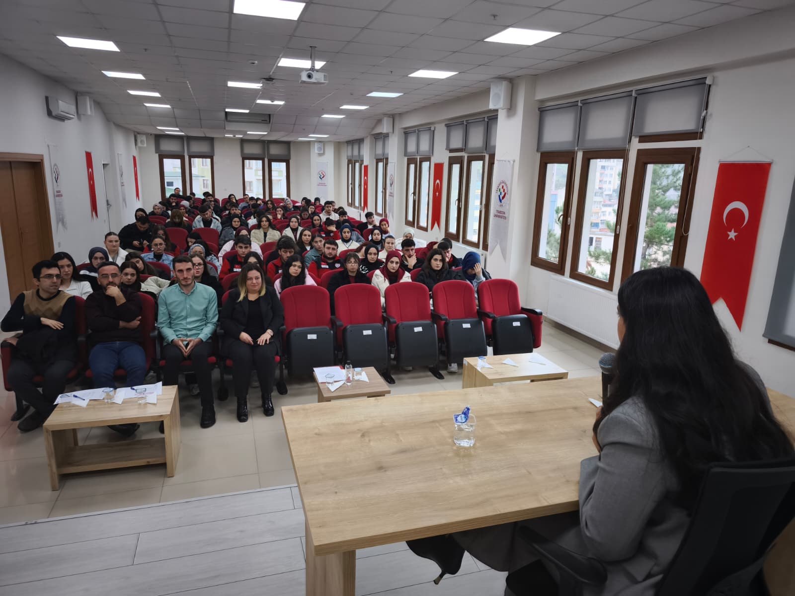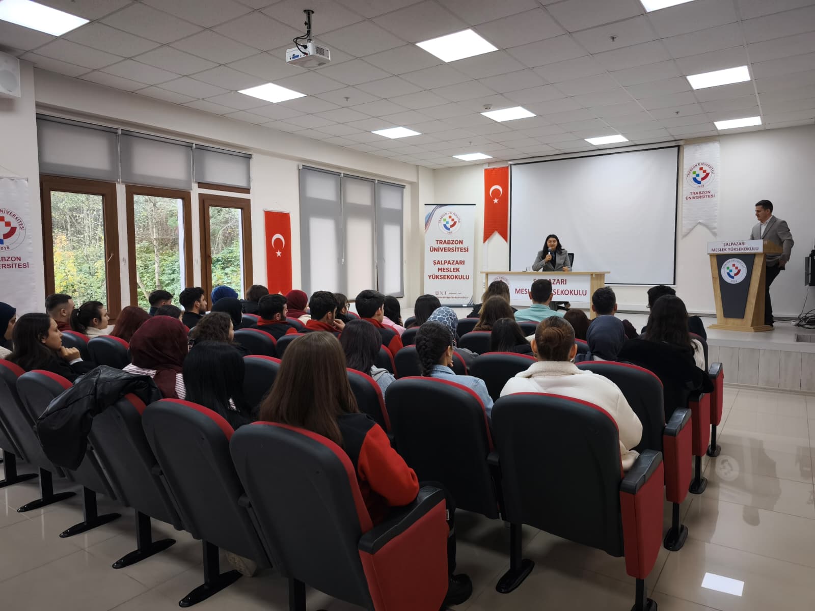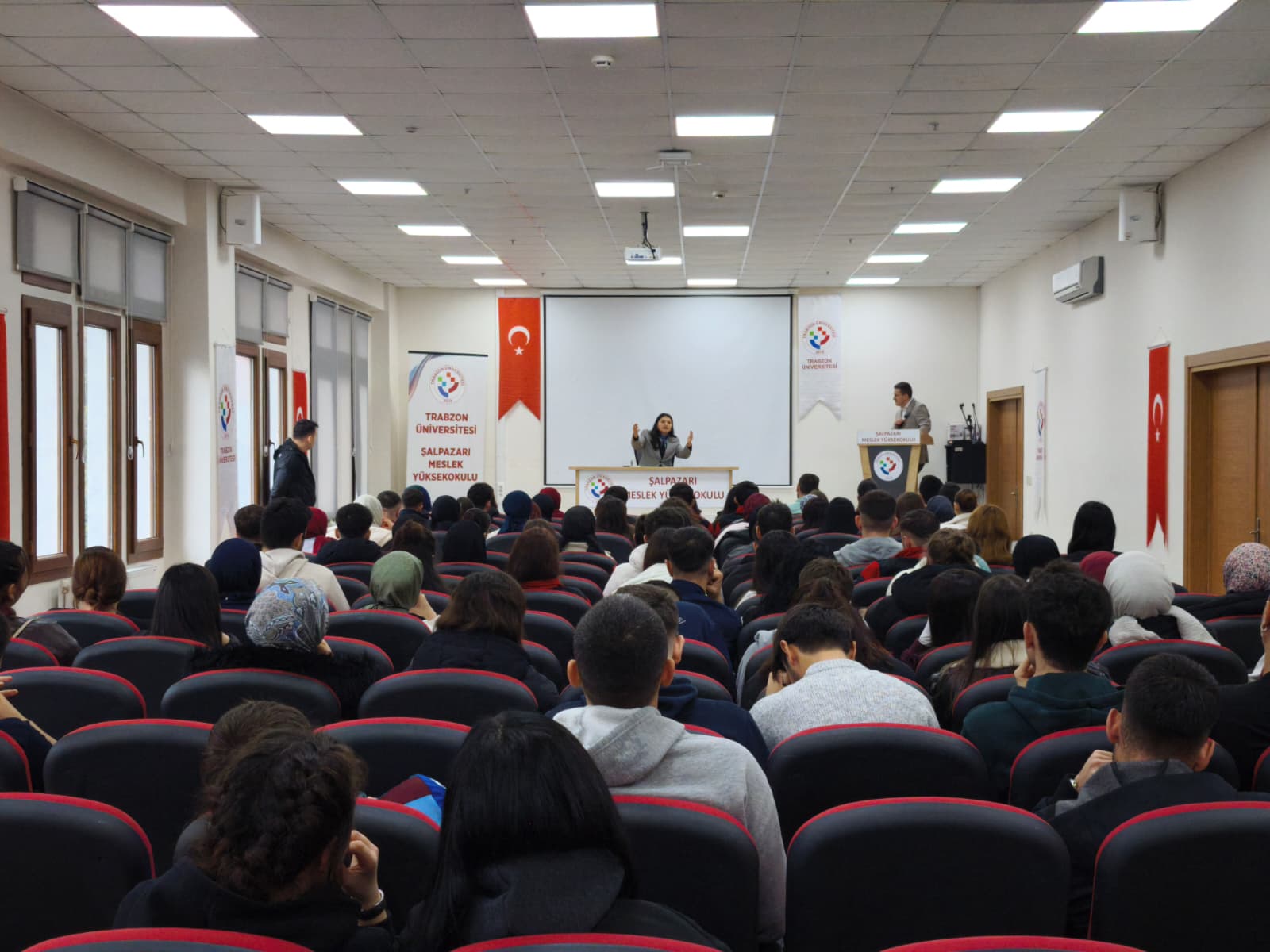 Kariyer Kapısı dersi kapsamında düzenlenen kariyer etkinliğinde, Şalpazarı Kaymakamı Sayın Kezban Yerlikaya Akpınar öğrencilerle bir araya gelerek kariyer yolculuğuna ilişkin önemli deneyimlerini paylaştı. Etkinlikte, üniversite yıllarından başlayarak kamu görevine uzanan mesleki serüvenini aktaran Sayın Akpınar; planlı çalışmanın, disiplinli bir hazırlık sürecinin ve kararlılığın kariyer başarısındaki belirleyici rolüne dikkat çekti. Konuşmasında özellikle KPSS ve kaymakamlık sınavlarına hazırlık sürecinde izlediği çalışma yöntemlerine, motivasyonunu nasıl koruduğuna ve sınav stresiyle başa çıkma yollarına değinen Sayın Akpınar, öğrencilerden gelen soruları da içtenlikle yanıtladı. Yazılı ve sözlü mülakat süreçlerinde dikkat edilmesi gereken hususları örneklerle açıklayarak, adayların kendilerini doğru ve etkili bir şekilde ifade etmelerinin önemini vurguladı. Meslek hayatına ilişkin deneyimlerini de paylaşan Sayın Akpınar; kaymakamlık mesleğinin sunduğu sorumluluklar, kamu hizmetinin toplumsal önemi ve sahada karşılaşılan zorluklar hakkında bilgilendirmelerde bulundu. Karşılaşılan sorunlar karşısında çözüm odaklı düşünmenin, iletişim becerilerinin ve etik değerlerin kamu yöneticiliğinde vazgeçilmez unsurlar olduğunu ifade etti. Programın sonunda öğrencilere yönelik tavsiyelerde bulunan Sayın Akpınar, erken dönemde kariyer bilinci kazanmanın, kendini tanımanın ve hedefler doğrultusunda kararlı adımlar atmanın önemine değinerek; öğrencileri akademik gelişimlerinin yanı sıra sosyal, kültürel ve mesleki açıdan da kendilerini geliştirmeye teşvik etti. Etkinlik, öğrenciler için ilham verici ve yol gösterici bir nitelik taşıdı. Program sonunda, değerli bilgi ve tecrübelerini bizlerle paylaşarak öğrencilerimize ilham veren Şalpazarı Kaymakamı Sayın Kezban Yerlikaya Akpınar’a Meslek Yüksekokulu Müdürü Sayın Doç Dr. Dönüş GENÇER tarafından teşekkür belgesi takdim edildi.