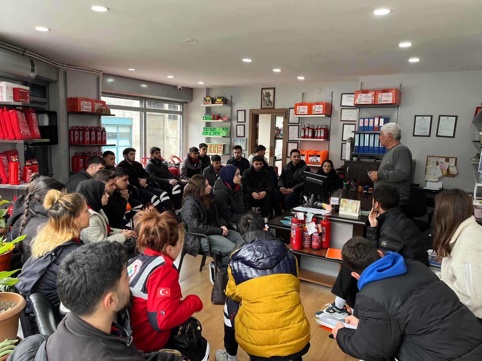 Meslek Yüksekokulumuz Mülkiyet Koruma ve Güvenlik Bölümü Sivil Savunma ve İtfaiyecilik Programı 2. sınıf öğrencileri, “İtfaiyecilik Alan Uygulamaları” dersi kapsamında Öğr. Gör. Aynur KAYA ve Öğr. Gör. Bereket Bülent AYKER koordinatörlüğünde ORSA Yangın Söndürme Cihazları firmasına teknik gezi gerçekleştirilmiştir. Bu kapsamda öğrencilerimize; ORSA Yangın Söndürme Cihazları firması personeli yangın söndürme maddelerinin kullanım alanları, dolum işlemleri ve bakımları hakkında detaylı bilgi ve uygulamalı eğitim sunulmuştur. Destek ve katkılarında dolayı, ORSA Yangın Söndürme Cihazları ve Güvenlik Sistemleri personeline teşekkür ederiz.