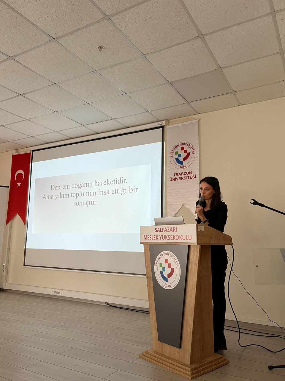 1–7 Mart Deprem Haftası kapsamında düzenlenen “Deprem Gerçeğiyle Yaşamak: Bilinç, Hazırlık, Dayanıklılık” başlıklı programda, Türkiye’nin deprem gerçeği; risk, kırılganlık ve toplumsal dayanıklılık kavramları çerçevesinde ele alındı. Meslek Yüksekokulumuz öğretim elemanlarından Sayın Öğr. Gör. Aynur KAYA tarafından yapılan Programda, depremin yalnızca doğal bir olay olmadığı; toplumsal bilinç, hazırlık düzeyi ve dayanıklılıkla doğrudan ilişkili bir süreç olduğu vurgulandı. Deprem gerçeğiyle yaşamanın bir zorunluluk olduğu ülkemizde, bilinçli ve dayanıklı bireyler yetiştirmenin toplumsal açıdan hayati önem taşıdığına dikkat çekildi.