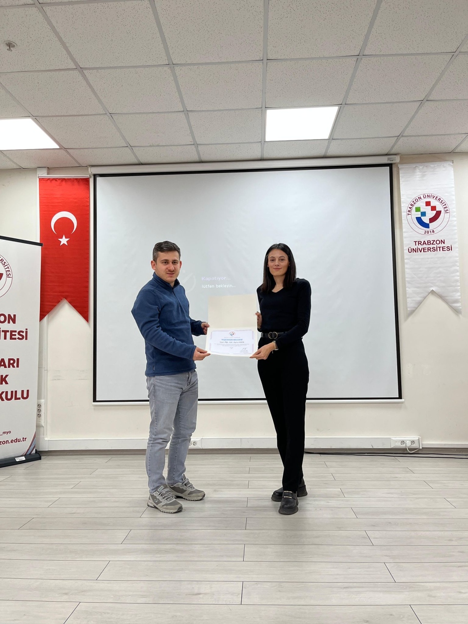 Etkin ve verimli sunumundan dolayı Sayın Öğr. Gör. Aynur KAYA'ya, Müdür Yardımcımız Sayın Öğr. Gör. Ömer UZUNTAŞ tarafından teşekkür belgesi takdim edildi.